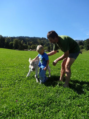 noch Kälbchen, Rinder, Milchkühe, Hühner und unsere Hunde Max und Heidi